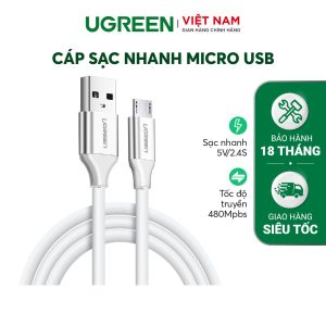 Cáp sạc nhanh Micro USB Ugreen US289 hoạt động tốt với hầu hết các thiết bị có cổng Micro USB, như điện thoại, máy tính bảng, pin dự phòng, loa Bluetooth, camera,,…