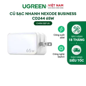 Ugreen CD244 là củ sạc nhanh cung cấp công suất sạc 65W, đủ để sạc nhanh điện thoại, máy tính bảng và máy tính xách tay của bạn từ một bộ sạc.