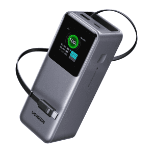 UGREEN trang bị màn hình TFT thông minh, có thể hiển thị dung lượng pin, điện áp, dòng điện, công suất theo từng cổng. Nhờ đó, người dùng dễ dàng theo dõi quá trình sạc và kiểm soát mức tiêu thụ năng lượng của từng thiết bị.